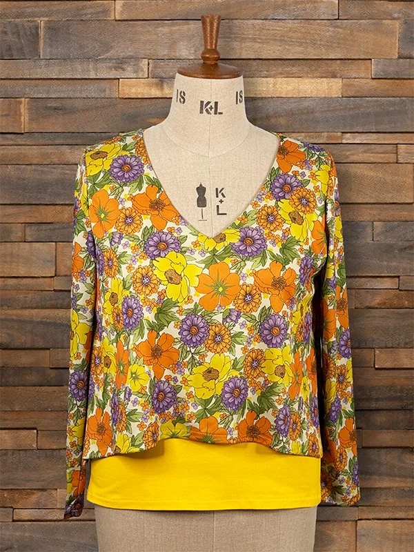 The Peacehaven is a versatile stretch top with long sleeves, a V neck and a flattering double layered silhouette.